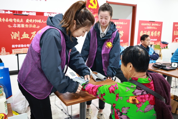 活动现场,志愿者们耐心地为老人们测量血压,仔细询问他们的身体状况,和排着队的老人聊聊家常,暖心的话语时不时引来老人们的开怀大笑,温馨地服务赢得了老人们的一致好评。