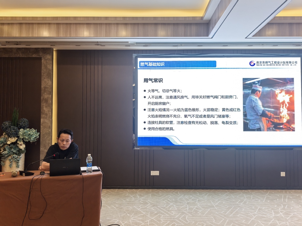 随后,接待服务部办公室负责人罗德宁就“燃气事故隐患的判定标准与排查方法”开展专题培训。培训中,他结合真实案例和工作经验,深入剖析当前在消防安全、燃气使用、应急预案等方面可能存在的安全隐患。此外,会议还组织员工观看了2025年江苏省“安全生产月”公益宣传片和宾馆行业灭火应急疏散演练示范片。