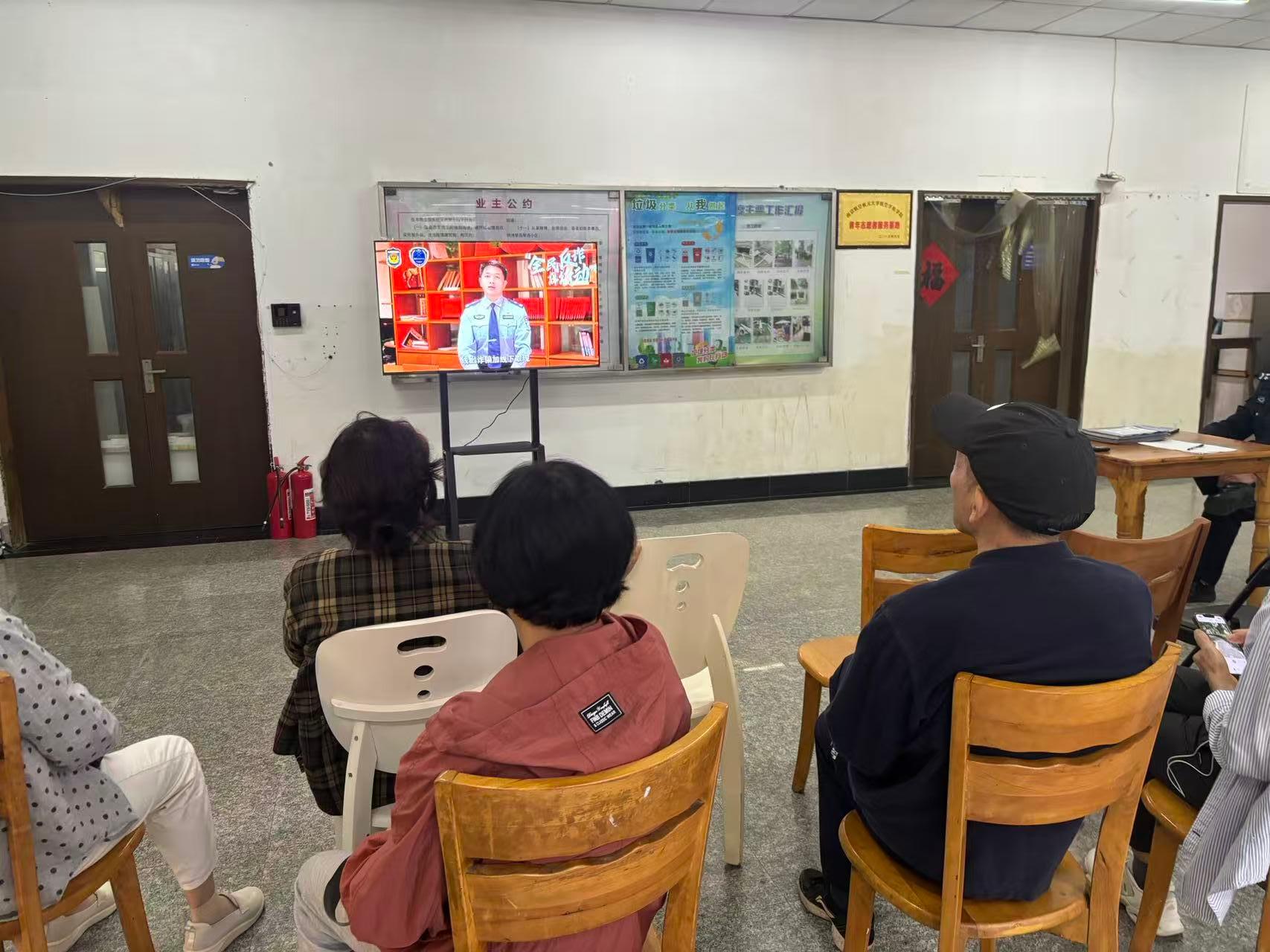 活动开始前,社区民警首先对揽翠苑项目部的反诈宣传成果给予肯定。小区内随处可见的横幅、出入口循环播放的反诈语音以及业主群里的案例推送,这些举措构建起线上线下的立体宣传矩阵,让反诈知识融入居民生活。